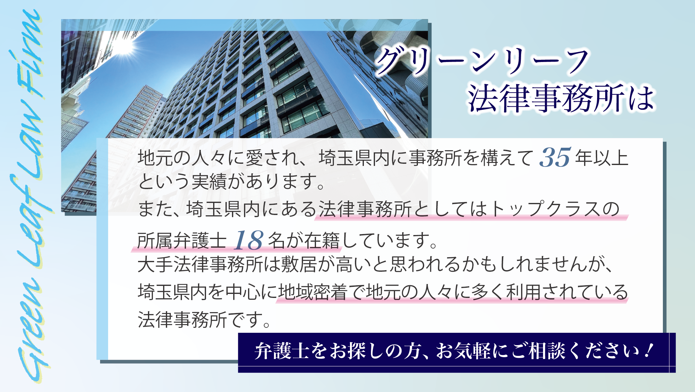 ※トラブルをかかえ埼玉の弁護士をお探しの方、グリーンリーフ法律事務所(埼玉県さいたま市大宮区)にお問い合わせください。