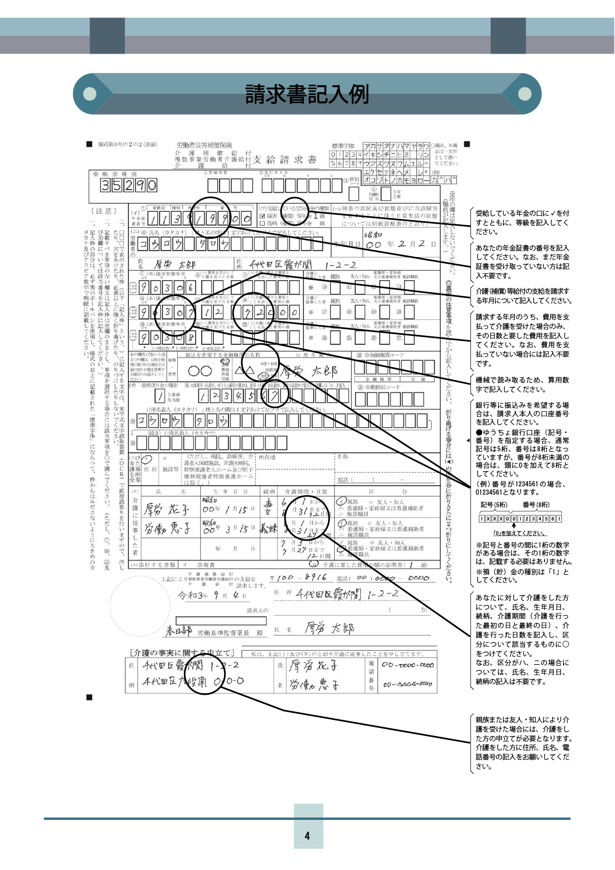 この請求書は事業主の証明が不要なため、全ての記載内容の責任は請求者本人にあります。特に以下の項目は正確に記入してください。