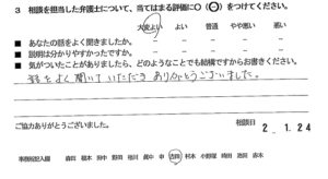 お客様の声(ご相談者の声)評判・口コミ 公開日:2020/03/12 お客様の声 ご相談者の声 話をよく聞いていただきありがとうございました。 ■あなたの話をよく聞きましたか:大変よい ■説明はわかりやすかったですか:大変よい 「お客様の声(ご相談者の声)評判・口コミ」 「お客様の声(ご相談者の声)評判・口コミ」