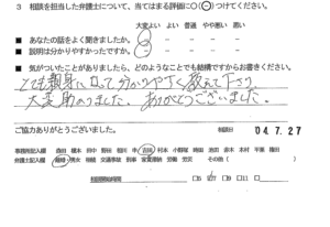 お客様の声(ご相談者の声)評判・口コミ 公開日:2022/09/01 お客様の声 ご相談者の声 とても親身になって分かりやすく教えて下さり、大変助かりました。ありがとうございました。 ■あなたの話をよく聞きましたか:大変よい ■説明はわかりやすかったですか:大変よい 「お客様の声(ご相談者の声)評判・口コミ」 「お客様の声(ご相談者の声)評判・口コミ」