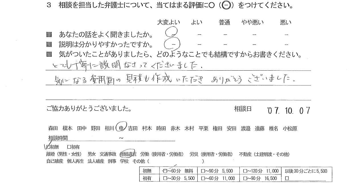 とても丁寧に説明なさってくださいました。 気になる費用面の見積りも作成いただき ありがとうございました。