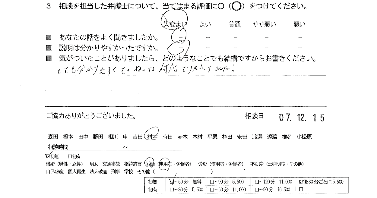 ■年代 ■担当弁護士 ■あなたの話をよく聞きましたか ■説明はわかりやすかったですか