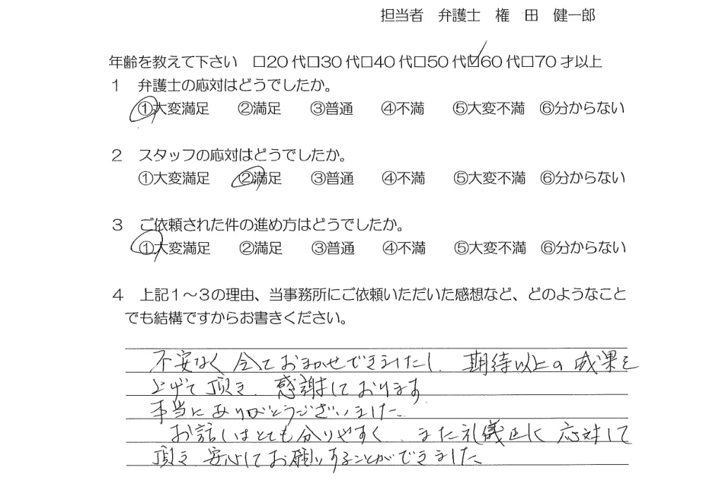 お話はとても分かりやすく、また、礼儀正しく対応して頂き、安心してお願いすることができました。